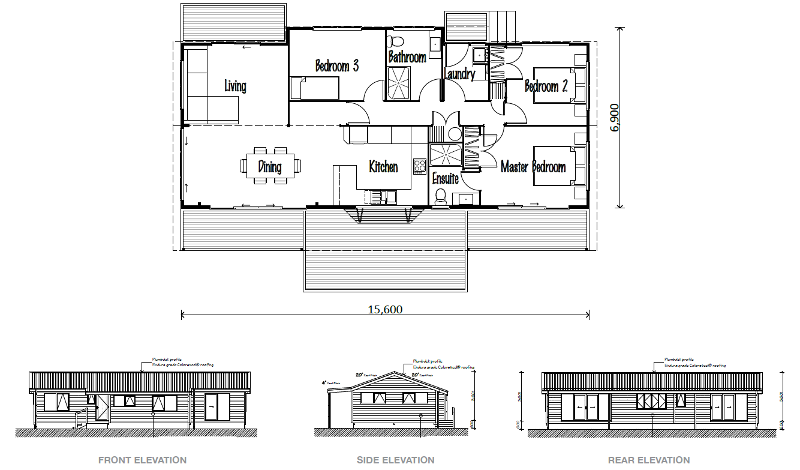 A modern twist on a classic design. This compact 3 bedroom, 2 bathroom home measures 103m². With a spacious open plan living area and large patio straight out to the veranda, the Nelson is perfect for entertaining. The family bedrooms are clustered around a central hallway, giving every room plenty of natural lighting throughout the day. Add a carport to the design to protect your motor from the elements, and extend the decking for even more entertaining space. If your block has a gradient, this home can be constructed on poles.